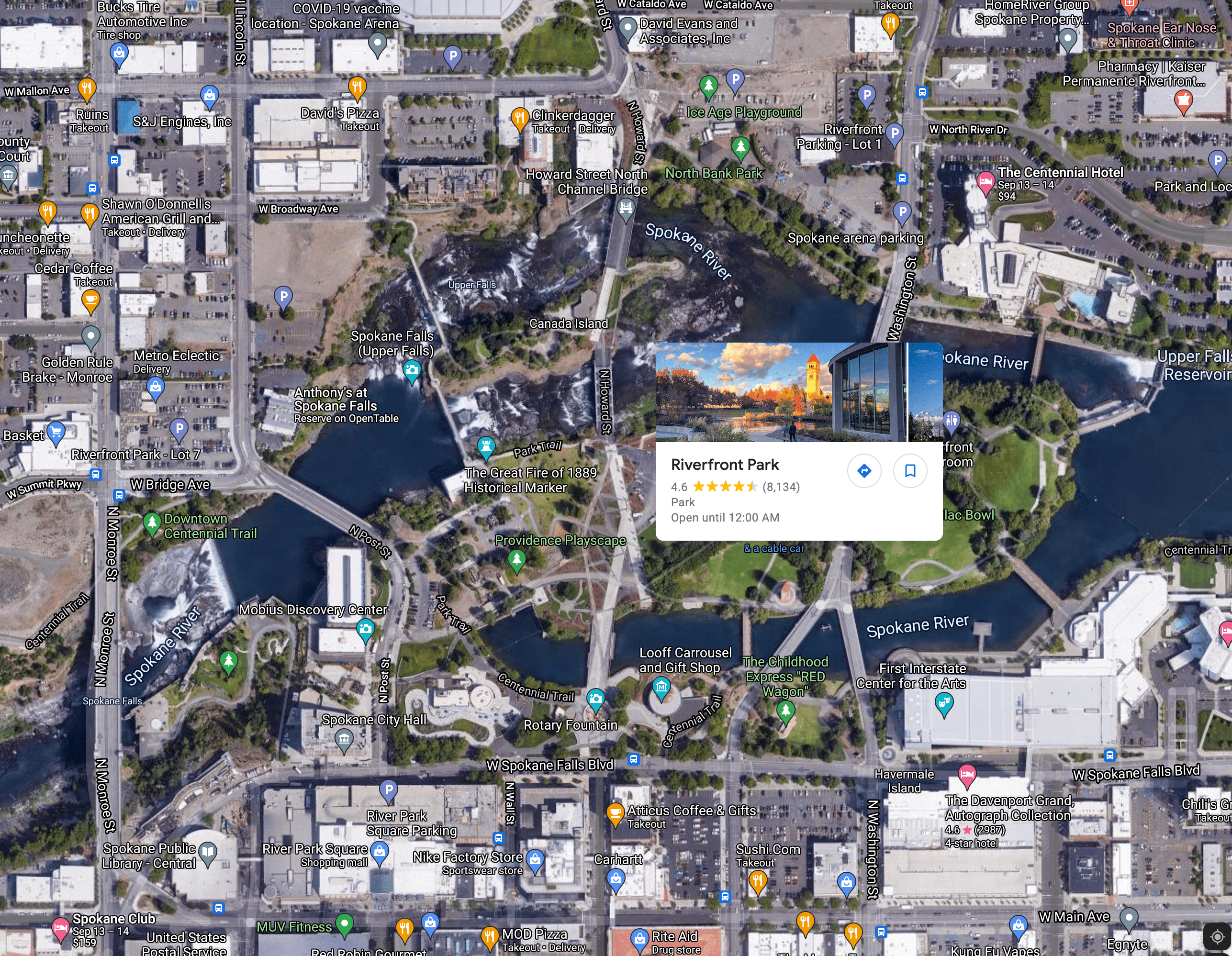 In 1974 Riverfront Park was turned from an old rail yard into the home of the 1974 World’s Fair. The park is a large peninsula with more than half a dozen bridges.